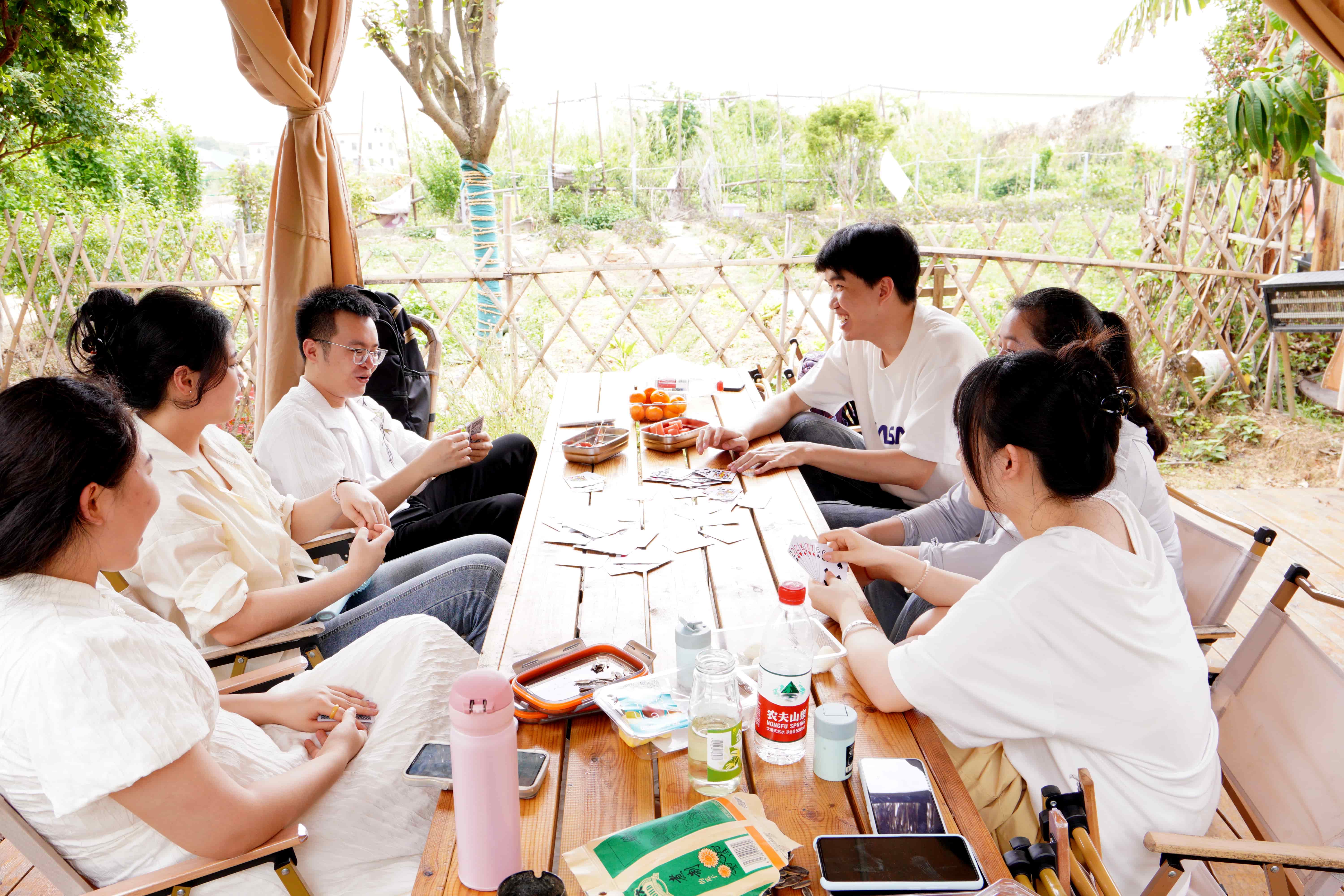 清晨的阳光穿过番茄藤蔓,斑驳地洒在欢声笑语的团队中。这场农场团建让我们在都市生活之外,重拾了最质朴的快乐。 采摘中,有人专注示范标准姿势,有人为裂开的果实懊恼又释然。围炉煮茶时,升腾的雾气映照着彼此耐心的指导,棉花糖在火光中膨胀的甜蜜,唤醒了久违的童心。烧烤晚会上,焦黑的鸡翅引发阵阵欢笑,"爆开大单"的调侃里藏着朝夕相处的默契,而递上的完美烤串,恰似工作中及时的援手。 这或许就是团建的本真意义——在番茄藤下,在炉火旁,在星光中,我们找回了工作之外最自然的情感联结。